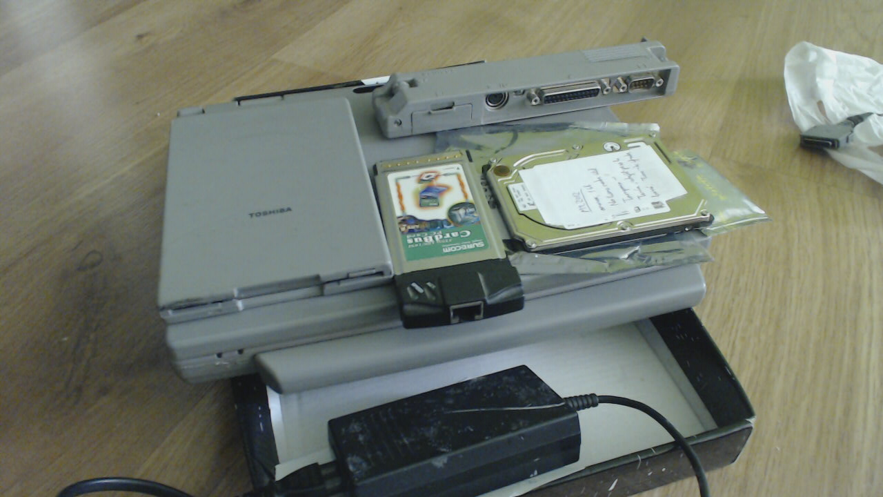 Toshiba Portégé 300CT + accesorios. En venta, 140 €. Portátil antiguo (1997) con 32 Mb RAM. Bastante ligero y funciona bien. Toshiba Portégé 300CT. Pentium 133 MMX, 32 Mb RAM, 1'5 Gb disco duro (y doy otro más, de 60 Gb), USB, infrarojos, PCMCIA, sin CD, con tarjeta de sonido, y pantalla 16:9 (1024x600). Gasta muy poco (10W). Ha vivido su historia como servidor web varios años: http://www.danielclemente.com/amarok/ Incluyo cargador, disquetera externa, adaptador para puertos serie+paralelo+PS/2, dos tarjetas de red PCMCIA y una wireless (necesita firmware nuevo), batería (aún dura mucho, más de 1 hora de uso), disco duro original de 1'5 Gb más otro de 60 Gb. Pantalla perfecta. Teclado con pegatina para ñ etc. Todo en buen estado. No hace ruido. Tiene GNU/Linux 2.6.18, y le va el modo gráfico (incluso he lanzado OpenOffice, lentísimo). El disco 60 Gb viene de otro ordenador y el kernel no tiene soporte USB ni red ni sonido para este ordenador, así que hay que poner un kernel más completo (creo que el del disco de 1'5 Gb va mejor). Lo he visto usado con Windows también. Lo vendo para hacer sitio y por falta de tiempo para cuidarlo. Escríbeme en cualquier momento aunque el anuncio sea viejo. Mi correo está en mi web también. Podría enviarlo (también a otros países) si pagas el envío, pero prefiero por Gavà/Barcelona. Este modelo lo veo - demandado por 150€ (https://www.ebay-kleinanzeigen.de/s-anzeige/suche-toshiba-portege-300ct-310ct-320ct/2190685730-278-8190 etc.) - vendido por $200 (https://www.recycledgoods.com/toshiba-pa1127u-t2a-pentium-133mhz-portege-300ct-32-ram-1-6gb-hard-dr/) o más - y ya sólo los accesorios vendidos por >40€ (https://omnibooks.us/products/toshiba-portege-300ct-320ct-600ct-610ct-620ct-650ct-external-floppy-disk-drive). Especificaciones: https://support.dynabook.com/support/staticContentDetail?contentId=637964&isFromTOCLink=false Más palabras clave: vintage, old laptop, portege, 300 ct Agosto 2022 (pero escríbeme más adelante) Mi correo (gmail punto com): n142857 @